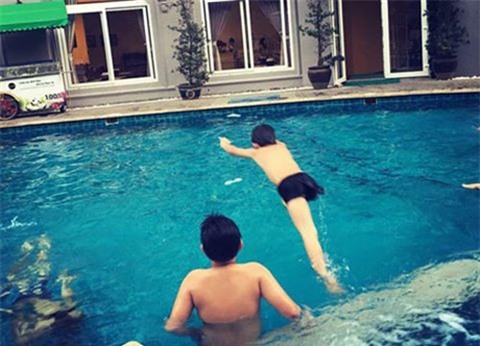 Thiện Nhân giờ đã bơi thành thạo dù ban đầu việc thăng bằng rất khó |
