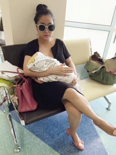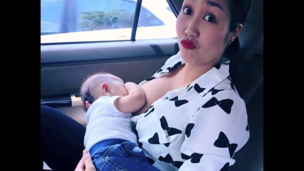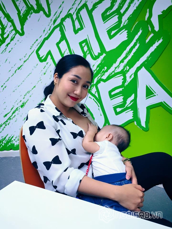 Ốc Thanh Vân vô tư cho con bú mọi lúc mọi nơi