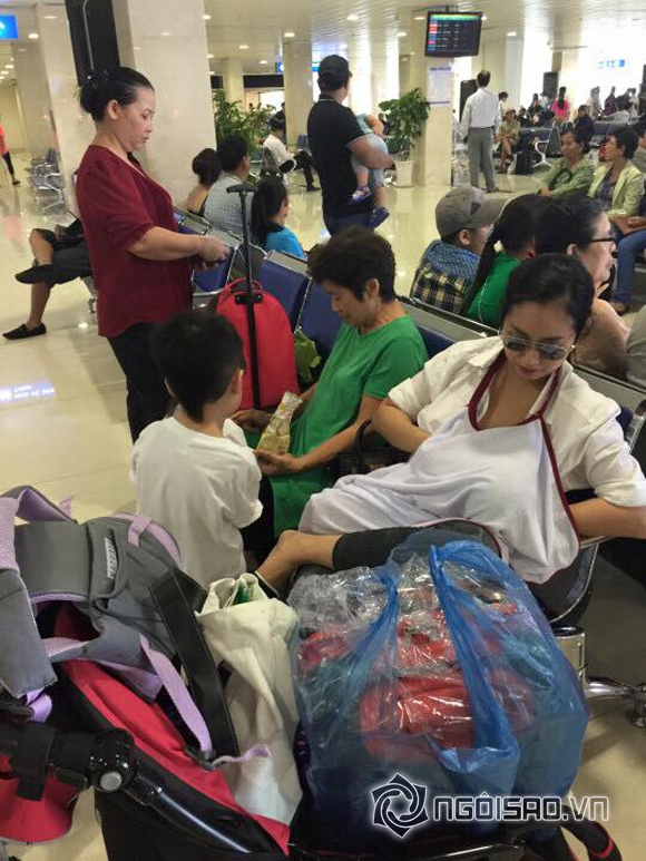 Ốc Thanh Vân thản nhiên 'tiếp sữa' cho con trên máy bay