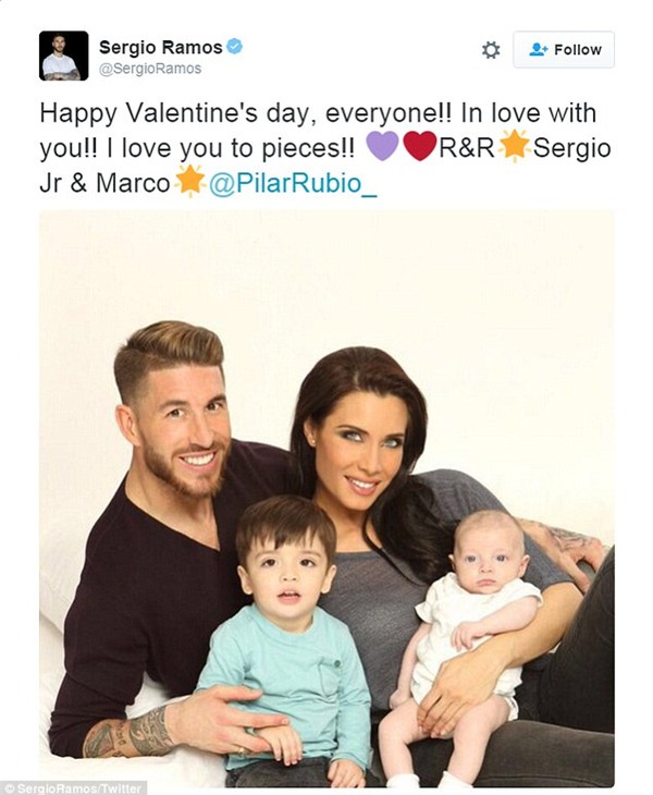 vệ Sergio Ramos (Real Madrid) đăng ảnh gia đình hạnh phúc cùng lời