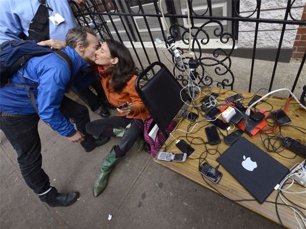Sau siêu bão Sandy, người dân Mỹ kéo ổ điện ra ngoài đường để chia sẻ với những người đã không còn nhà ở.