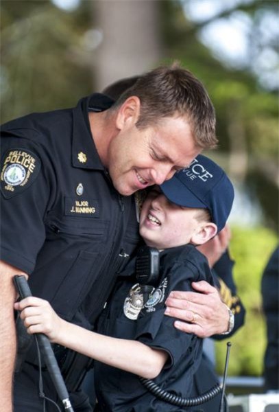 Cậu bé mù 13 tuổi Gage Hancock-Stevensđược các sĩ quan cảnh sát Bellevue, Washington, Mỹ cho mặc đồng phục và đi tuần trên xe chuyên dụng. biến giấc mơ khi chưa mất thị lực của cậu thành thật.