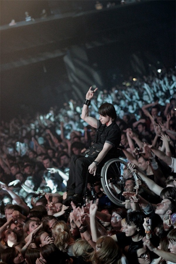 Một thiếu niên bại liệt được bạn bè đưa tới buổi hòa nhạc của ban nhạc Korn tại thành phố Moscow, Nga