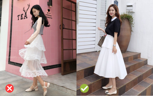 Chân váy nhiều tầng là món đồ thời trang ''ruột'' của các cô nàng bánh bèo nữ tính. Độ bồng bềnh của váy thường mang đến cảm giác nhẹ nhàng và điệu đà cho hội chị em. Tuy nhiên, đến thời điểm hiện tại, kiểu váy này không còn xuất hiện nhiều nữa. Chưa kể đến việc tầng váy càng nhiều, đồng nghĩa với việc độ sến sẩm càng cao. Những cô nàng sở hữu vóc dáng đầy đặn hoặc mũm mĩm nên tuyệt đối tránh xa vì chúng sẽ khiến vẻ ngoài của bạn trở nên nặng nề hơn rất nhiều. Lựa chọn phù hợp nhất chính là những chiếc váy đơn giản có nhấn nhá vài chi tiết hoặc có lớp vải mỏng để tạo độ bồng bềnh nhẹ cho váy.