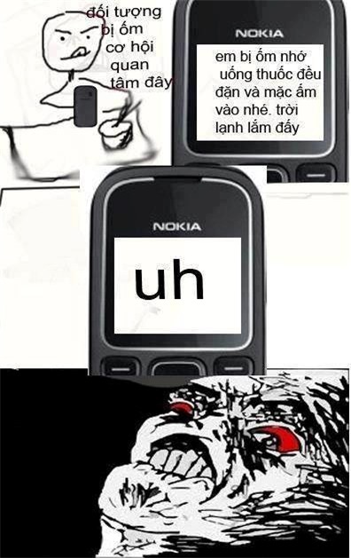 Minh Vương nói: “Nhận mấy tin nhắn trả lời chỉ có 1 chữ “uh” khiến mình có cảm giác như mình đang làm phiền người ta lắm vậy. Đặc biệt là khi mình đang nhắn tin quan tâm hỏi han như “Hôm nay nghe nói em bị cảm. Em nhớ uống thuốc và đi ngủ đúng giờ nhé!”. Một tin trả lời uh khiến cảm xúc như bị trôi tuột. Lần sau chả muốn nhắn gửi gì nữa!”.
