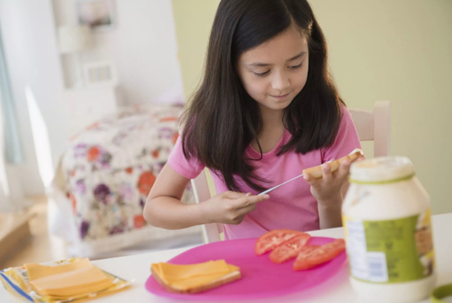 Ngay cả những đứa trẻ nhỏ nhất cũng có thể học cách chuẩn bị một bữa ăn trong bếp. Tất nhiên, chúng ta không nói về một bữa tối năm món, nhưng bạn có thể dạy cho trẻ mẫu giáo cách lau bàn, xếp bát đũa, bày hoa quả và học sinh tiểu học có thể được dạy cách sử dụng lò vi sóng. Học từ khi còn mầm non đến thiếu niên, trẻ có thể tự lo cho bản thân kể cả khi bạn vắng nhà.