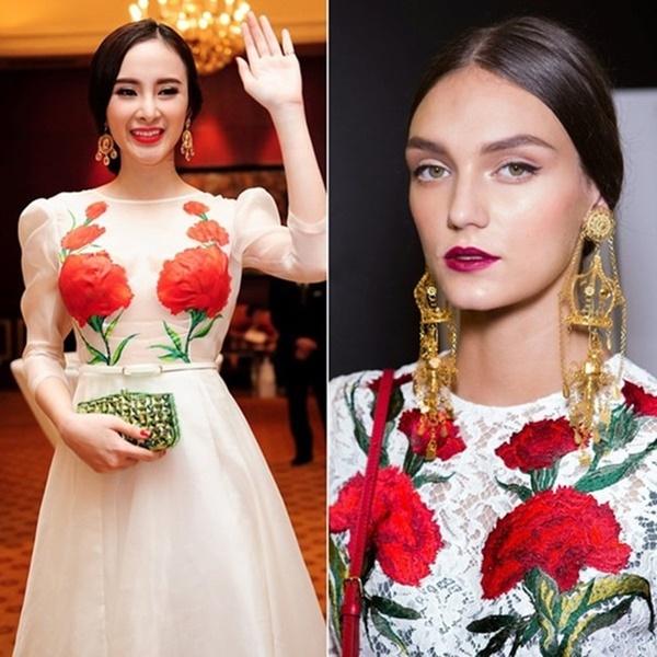 Không những "nhái" phong cách của Phạm Băng Băng và nhiều lần, Angela Phương Trinh cũng "mượn tạm" hàng copy của những nhà mốt nổi tiếng.