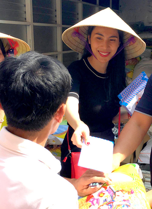 Thuỷ Tiên và Công Vinh luôn thân thiện và ân cần đối với những người được vợ chồng cô giúp đỡ.