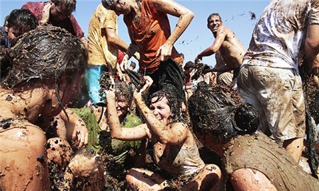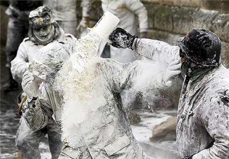 Có lẽ cà chua và nho chưa "đủ đô" nên người Tây Ban Nha không quên tạo ra thêm một lễ hội “ném đồ” tương tự. Tuy nhiên, họ không dùng các loại hoa quả thông thường mà dùng sơn và dầu hắc!