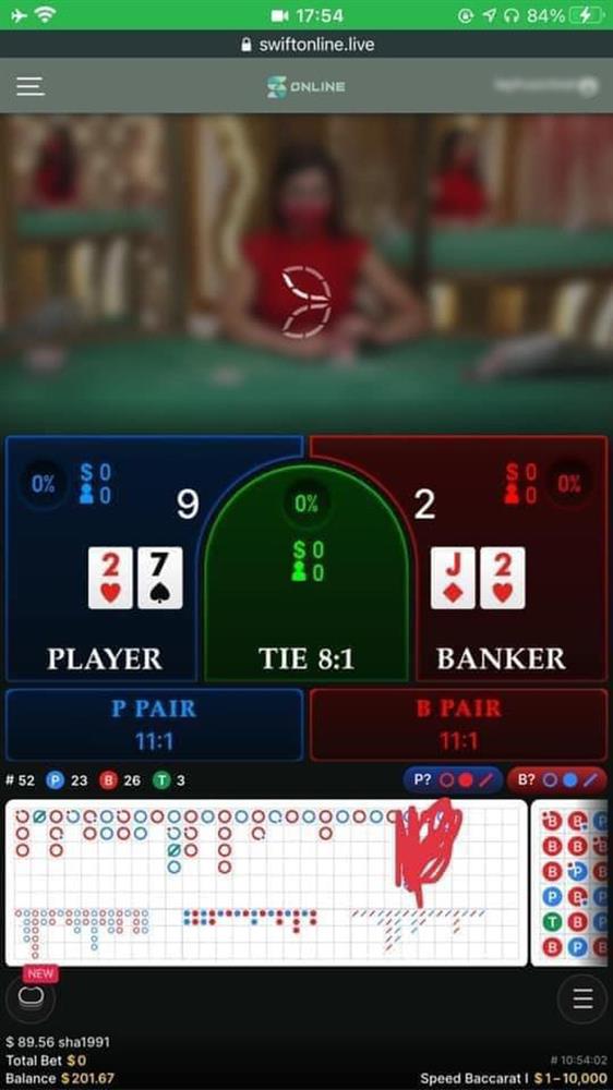 Giao diện của một bàn Baccarat trên trang Swiftonline.live trước khi bị triệt phá