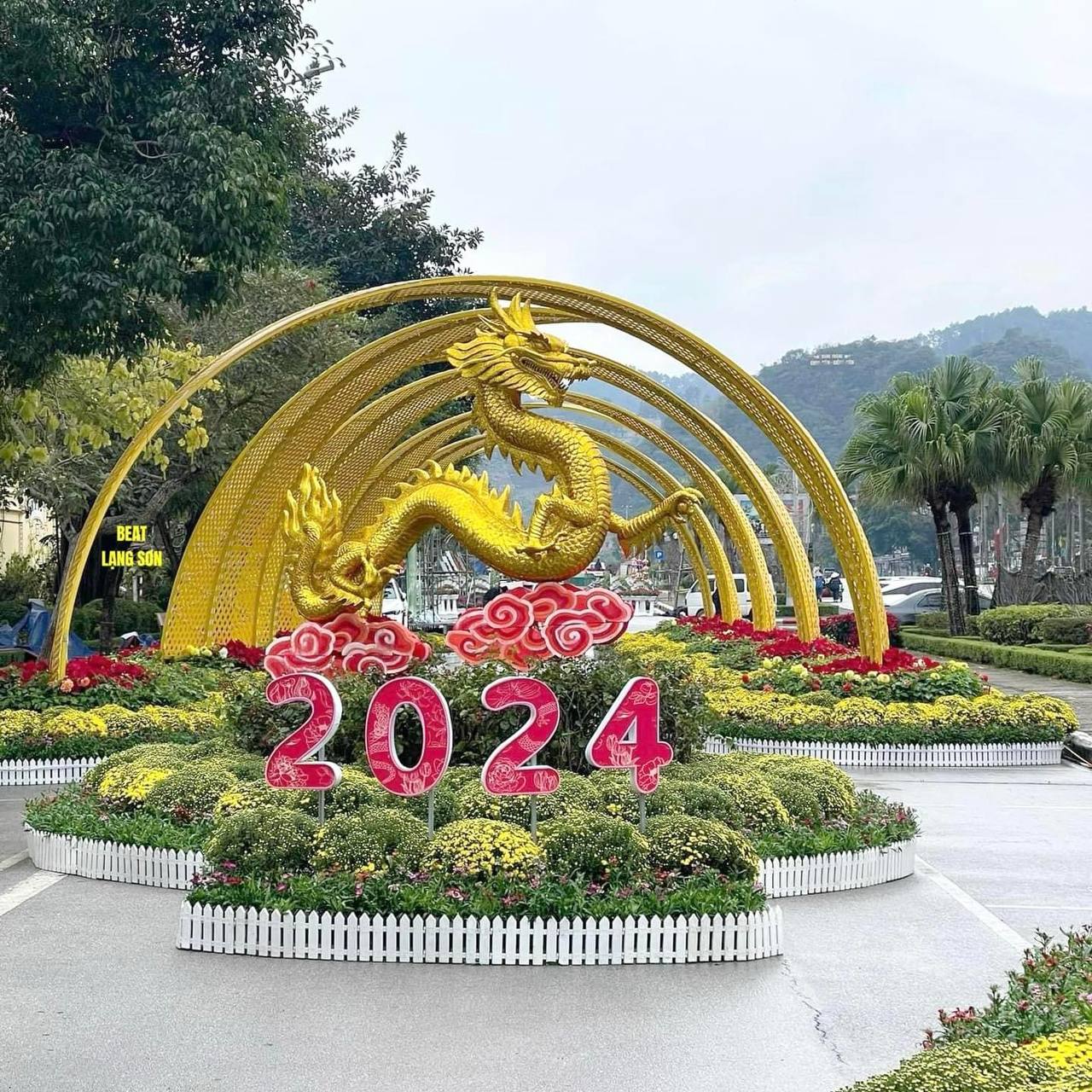 Rồng ở Lạng Sơn có phần "mi nhon" hơn so với các tỉnh thành khác. Nhưng theo tiết lộ của người bản địa thì buổi tối lên đèn vô cùng nổi bật. Ảnh: Beat Lạng Sơn TV