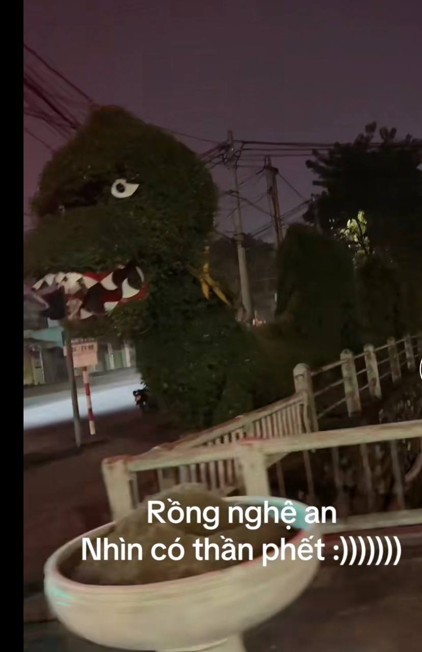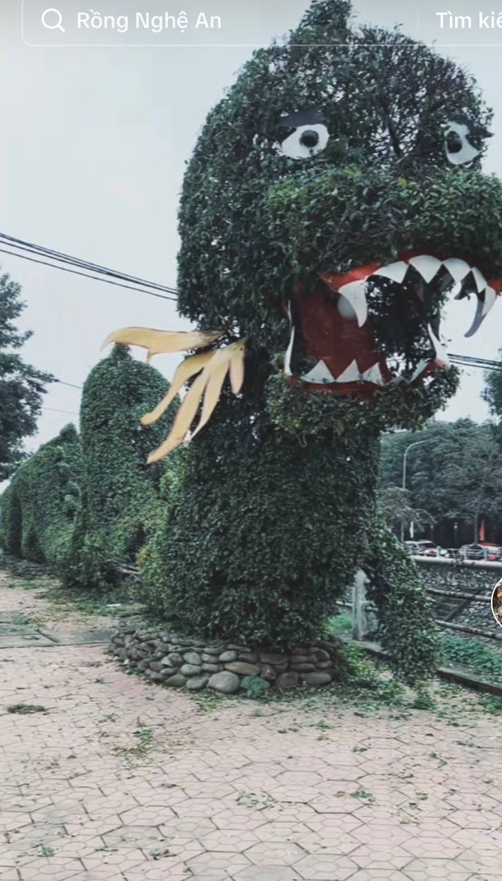 Đang gây xôn xao khắp "cõi mạng" lúc này phải nhắc đến con rồng ở đường hoa Nghệ An. Trong một clip xu hướng trên TikTok, người quay đã miêu tả đây là chú rồng với biểu cảm "thất tình" nhưng vẫn muốn mang tới tiếng cười cho mọi người. Ngay cả đoạn clip quay trong đêm, người xem cũng phải cười nghiêng ngả vì thiết kế độc lạ ấy. Sau khi bị dân tình nhận xét thì phía đơn vị tạo hình đã cắt tỉa lại, song vẫn không bớt đi miếng hài hước nào.