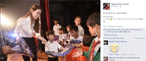 Không những thế, trên trang cá nhân, Cường Đô la cũng thường xuyên chia sẻ những câu ngọt ngào cho Hà Hồ.
