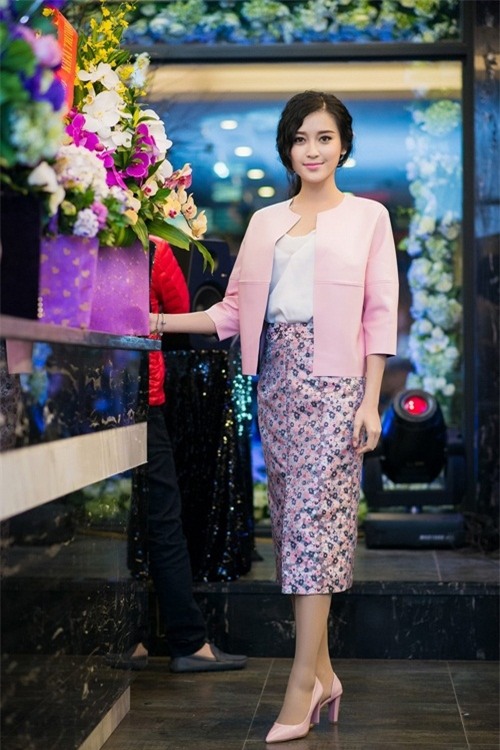 Xuất hiện trong một sự kiện với trang phục tông hồng cùng cách trang điểm không có điểm nhấn, Á hậu Huyền My