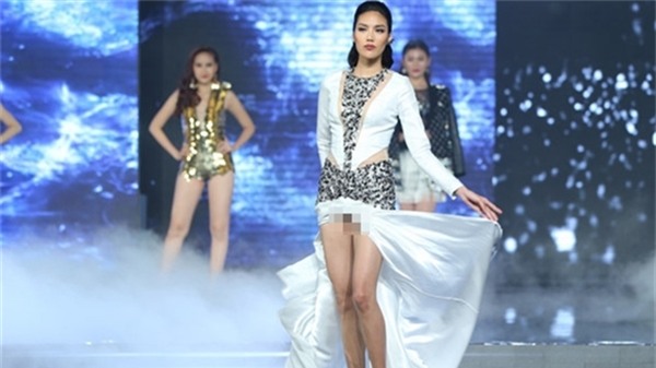 Á hậu Huyền My gây bất ngờ khi diện bộ cánh kém sang trên một sàn diễn thời trang. Vốn là mỹ nhân có gu ăn mặc tinh tế và đẳng cấp nên việc Huyền My diện chiếc đầm sến súa với chất liệu lưới bóng, nhấn nhá kỳ quặc phần thân trên khiến không ít người ngạc nhiên.