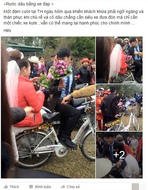 Hồi đầu năm, một diễn đàn dành cho giới trẻ đăng tải loạt ảnh về màn rước dâu bằng xe đạp tại Thanh Hóa diễn ra hôm 16/2 tại huyện Triệu Sơn (Thanh Hoá).