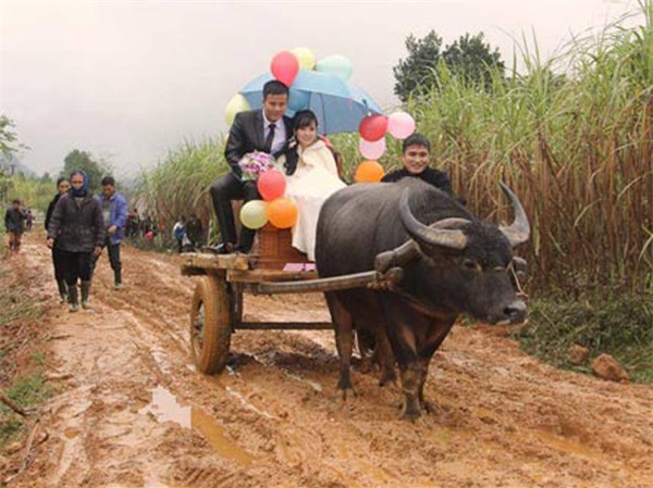 Đám cưới kỳ lạ giữa chú rể Trần Văn Thành (SN 1990) và cô dâu Trần Thị Tuyết (SN 1992, cùng ở Nghệ An) từng khiến người dân nơi đây xôn xao khi chú rể phải dùng đến xe trâu để đón dâu.
