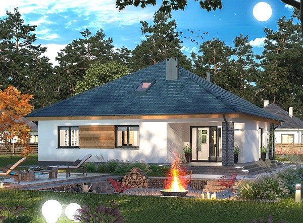 Mẫu nhà cấp 4 với thiết kế cổ điển, tạo sự ấm cúng cho cả gia đình nhờ hệ thống đèn vàng trong và ngoài nhà.