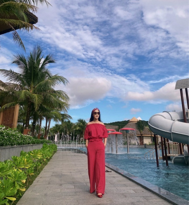 Màu hồng trẻ trung, quý phái được Hồng Diễm lựa chọn cho trang phục của mình.
