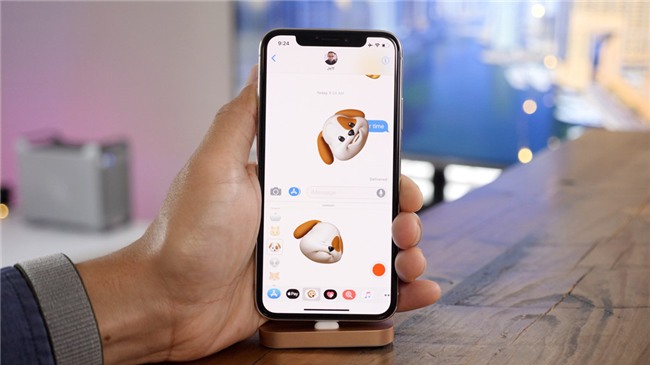 | Dùng Animoji như sticker: Ngoài chức năng tạo video, người dùng có thể gửi Animoji như một sticker. Người dùng chỉ cần tạo hình Animoji, sau đó chạm vào nó, hình sẽ tự động gửi vào đoạn tin nhắn. |