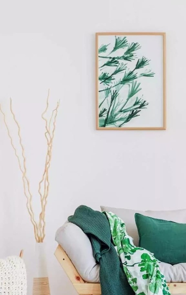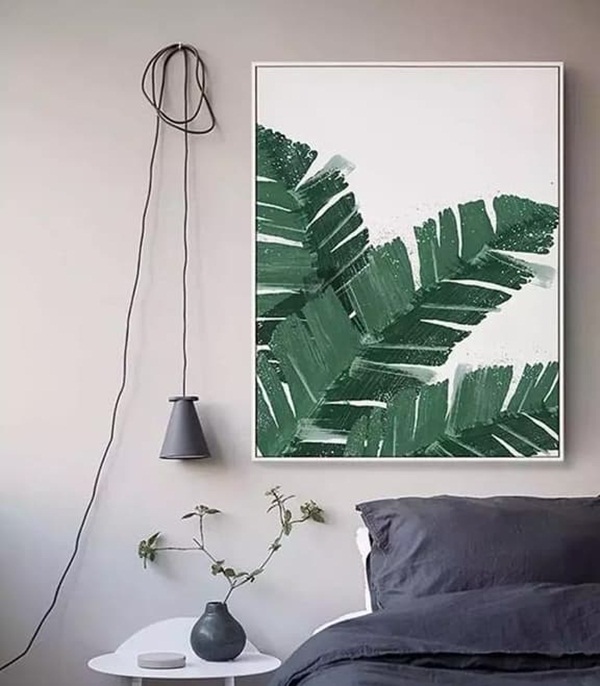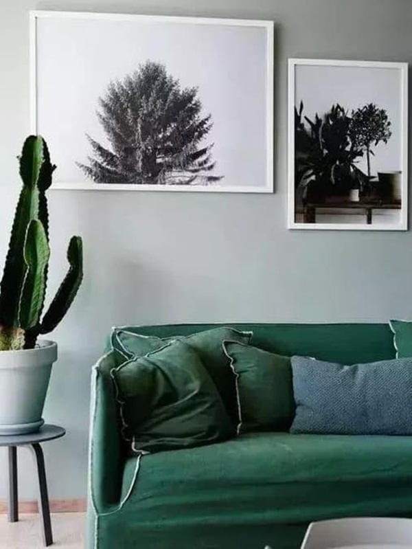 Những bức tranh trang trí màu xanh lá cây trên tường thêm nhiều màu sắc, trông rất mờ ảo và nghệ thuật, điểm xuyết một chút màu xanh lá cây trông nghệ thuật và tươi mát hơn.