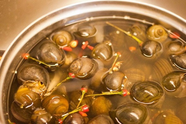 Lấy một lượng mẻ vừa phải trộn đều với ốc và đem luộc. Vị chua của mẻ giúp ốc nhả hết bùn đất và không còn vị tanh.