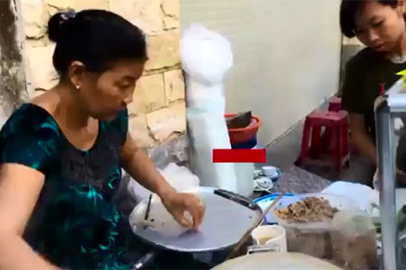 | Bánh cuốn có nguồn gốc từ miền Bắc, được làm từ bột gạo, nấm, thịt lợn và hành. Bánh cuốn thường được sử dụng làm bữa sáng, ăn kèm cùng nước mắm, giá đỗ và vài lát dưa chuột. Ảnh: Huong Bui/ Youtube. |