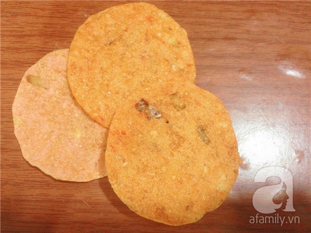 Bánh tráng đỏ bán theo bịch, mỗi bịch tầm 5 – 10 chiếc, tròn cỡ lòng bàn tay và giòn rộm. Bánh tráng đỏ có vị thơm, béo, hơi mặn và hơi cay nhưng lại nhạt. Bánh tráng đỏ có thể quệt với me hoặc vài hạt muốt trắng rắc lên. Dường như tuổi thơ của những 6x, 7x Sài Gòn, gần như ai cũng từng ăn qua món này.