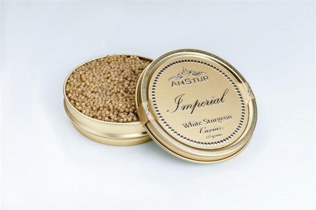 AmStur được biết đến với việc tạo ra những loại trứng cá muối tinh xảo có nguồn gốc từ Bờ Tây Hoa Kỳ, đắt nhất là cá Hoàng đế. Được làm từ trứng cá tầm trắng thu hoạch vào thời điểm trưởng thành, loại trứng cá mịn màng thơm mát như kem này rất hiếm hoi, chỉ khoảng dưới 50kg được sản xuất mỗi năm. Và để sở hữu hộp 1kg loại trứng cá muối xa xỉ này, bạn sẽ mất 7.915$ (gần 180 triệu vnđ), và được vận chuyển đến bất cứ nơi nào tại Các Tiểu vương quốc Ả Rập Thống nhất bằng tài xế.