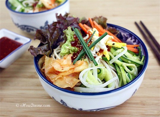 Mỳ lạnh cay hay kimchi bibim guksu là một món ăn mùa hè được xếp vào hàng cay nhất nhì Hàn Quốc. Ảnh:Chowdivine.com.