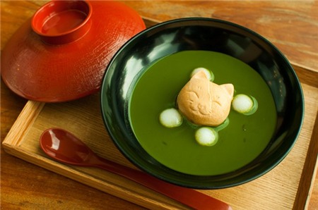 Dùng kèm với "chú mèo" là sốt đậu đỏ, sốt trà xanh và các viên bánh