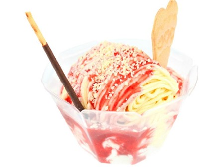 Spaghettieis hoặc kem spaghetti là món ăn phổ biến vào mùa hè ở Đức. Kem vani được đưa qua một máy xay giống như trong các xưởng sản xuất mì ống, kem được tạo hình như những sợi mì, được rưới đẫm siro dâu tây hay quả mâm xôi nhìn giống như nước sốt cà chua. Thay vì rắc thêm pho mát Parmesan, người ta cho vụn chocolate trắng hoặc dừa nạo lên trên để món kem trông giống như một dĩa mì Spaghettie.