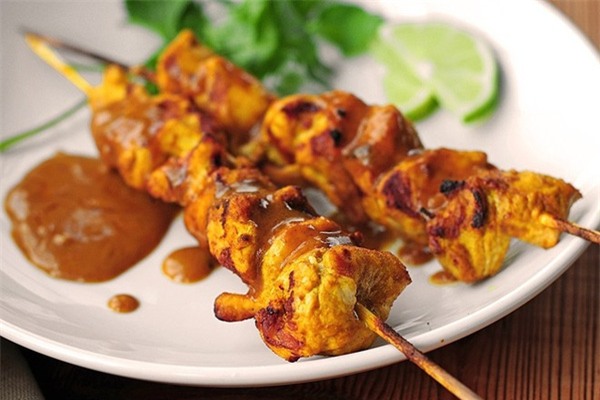 gà, dê, cừu hay thỏ được ướp nghệ, nướng trên than hoa và rưới sốt đậu