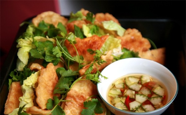 Đĩa phở cuốn trắng tinh, mùi thịt bò hấp dẫn lôi cuốn thực khách, khi ăn chấm nước mắm pha chua chua ngọt ngọt và vài lát dưa góp đu đủ.