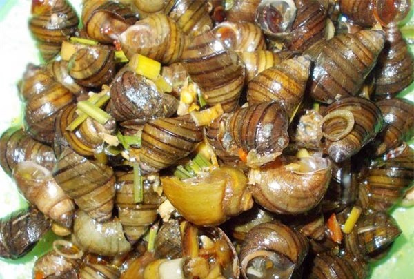 Những chú ốc được xào cùng với sả, gừng và gia vị trông sóng sánh, nước ốc ngọt thấm, thơm ngon. Để có được vị này, chủ quán phải ngâm và xả ốc thật kỹ để ốc sạch bùn. Khi xào phải trộn gừng, ớt, sả, gia vị... theo đúng tỉ lệ sao cho nước ốc ngọt thơm tự nhiên. Ăn kèm với rau sống, nước mắm ớt gừng, du khách sẽ cảm thấy vị cay nồng rất đặc trưng. Mỗi đĩa ốc chỉ có giá từ 5-10 ngàn đồng.