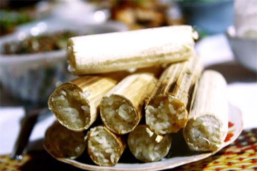 Với những người yêu Tây Bắc, không ai lạ lẫm gì món cơm lam, một món ăn đặc trưng của vùng cao. Cơm lam ngon phải được chế biến từ gạo nương, ngon nhất là gạo cẩm và nếp cái hoa vàng sau khi thu hoạch lúa xong vào tháng 9, tháng 10 âm lịch. Gạo cho thêm một chút muối, gừng được ngâm ủ qua đêm, đãi sạch rồi cho vào ống tre, thêm chút nước và nút lại bằng lá chuối, sau đó cho lên bếp lửa đốt.