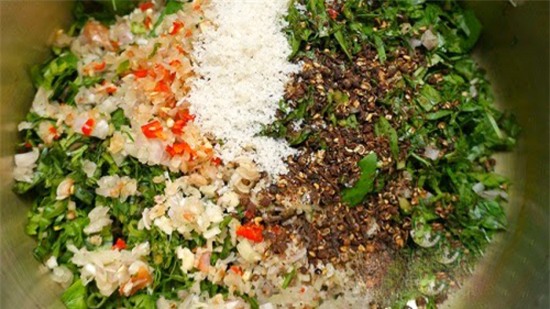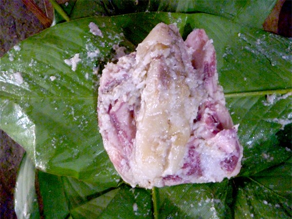 Sau mùa gặt, quả mắc nhung gieo vãi trên nương bắt đầu chín mọng, bà con hái đem về rửa sạch, thêm gừng xả, trộn với gạo tấm, tưới ít nước đủ chín, túm vào lá chuối buộc chặt vùi trong tro bếp nóng, hoặc đồ xôi, chỉ 30 phút sau sẽ có ngay một món ăn sền sệt, ngăm ngăm đắng, thơm cay là lạ đầy hấp dẫn và chấm với xôi rất hợp khẩu vị.