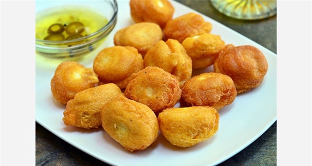 một lớp bột mỏng sau đó chiên vàng. Khi ăn, người ta chấm trứng với nước