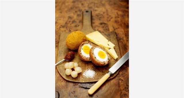 thay đổi nó theo cách của người Anh. Bọc trứng luộc bằng thịt rồi chiên