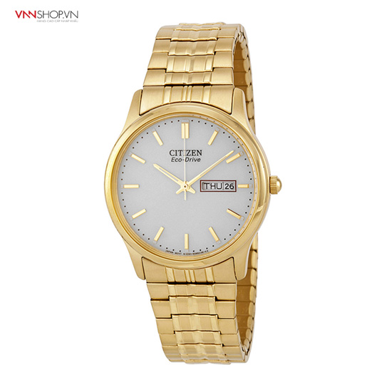 Một trong những phụ kiện không thể thiếu, thể hiện đẳng cấp của một doanh nhân thành đạt là đồng hồ. Chiếc đồng hồ nam chính hãng Citizen với tông vàng là chủ đạo, thiết kế dây đan với những gờ nổi tinh tế sẽ giúp chàng luôn tự tin và ấn tượng trước đám đông.