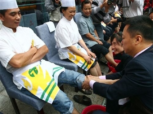 Trước đó, vào năm 2015, một công ty thương mại điện tử ở Trung Quốc đã gây bão mạng khi sếp trực tiếp thưởng Tết bằng cách quỳ gối rửa và massage chân cho nhân viên. Được biết, đó là 3 nhân viên xuất sắc nhất trong năm nên ngoài việc nhận tiền thưởng, họ còn được mời ngồi lên ghế cao để các sếp “tri ân” trước sự chứng kiến của tất cả mọi người trong công ty.