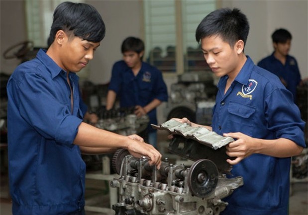 Sinh viên trong giờ học tại phòng thực hành ôtô. Ảnh:Ntt.edu.vn |