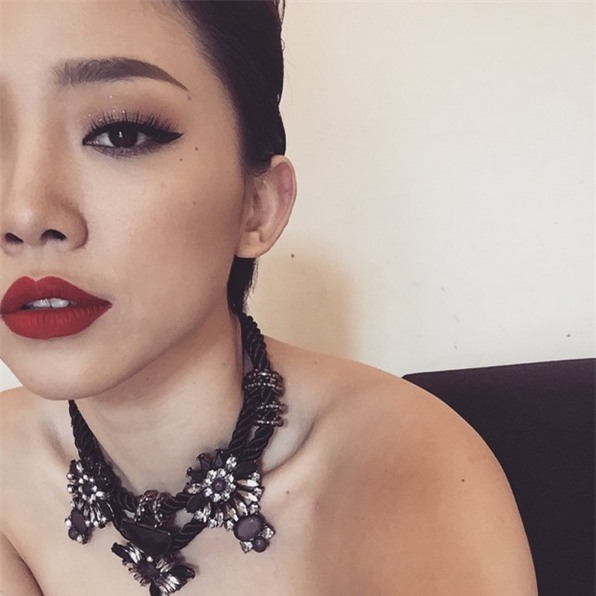 điểm của mình mà Hoàng Thùy Linh thường diện son đỏ vừa để tạo điểm
