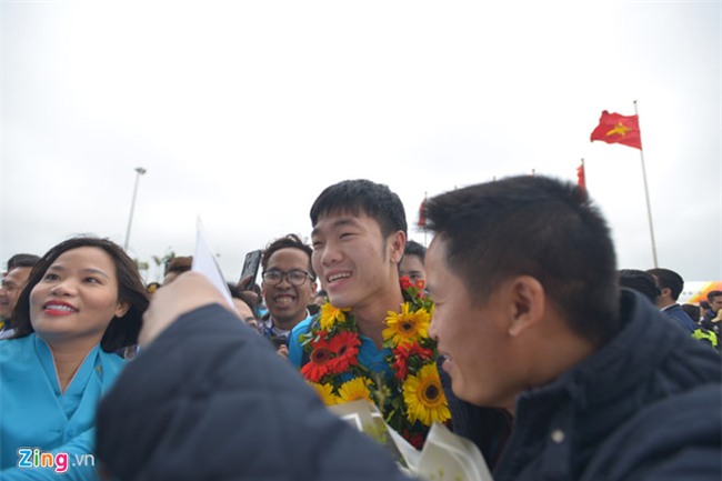 Các cầu thủ ngay sau đó được Phó thủ tướng Vũ Đức Đam chào đón, trao tặng vòng hoa chúc mừng từng người.