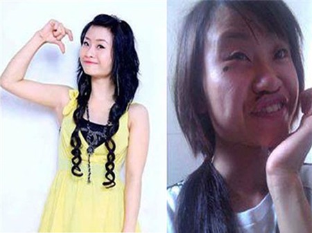 Hình ảnh thật và hình ảnh xấu xí của cô gái có nick name là Chippy Polla gây sốt dân mạng vừa qua. |