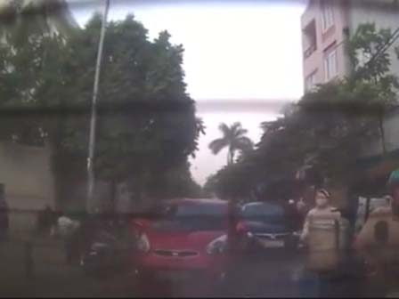 Trong đoạn clip đó, một tài xế bất ngờ mở cửa xe xuống đường mà không quan sát đã khiến 2 vợ chồng cùng con nhỏ ngồi trên xe máy ngã xuống vỉa hè.