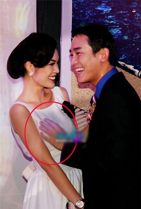 | Hứa Vĩ Văn hào hứng "chào hỏi" Dương Cẩm Lynh, vô tình "sàm sỡ" vòng 1 của cô. |