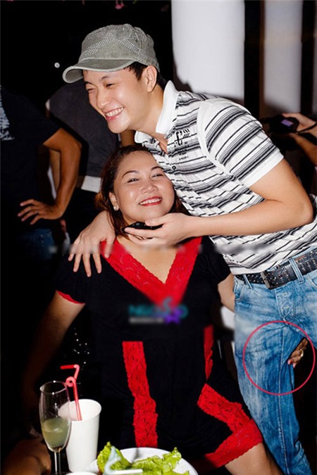 | Phương Thanh tạo dáng nhí nhảnh nên "hồn nhiên" đặt đầu gối vào "chỗ hiểm" của Trương Nam Thành. |