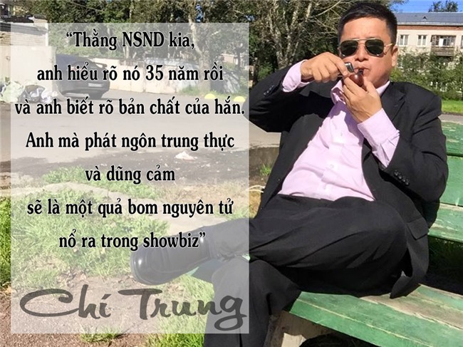 "Nhưng thằng NSND kia anh hiểu nó 35 năm rồi và anh biết rõ bản chất của hắn. Anh mà phát ngôn trung thực và dũng cảm sẽ là một quả bom nguyên tử nổ ra trong showbiz", Chí Trung nói.