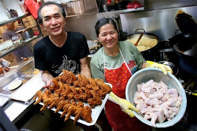 đã xếp hàng khoảng 30 phút để thưởng thức món cánh gà rán ở quầy hàng